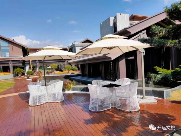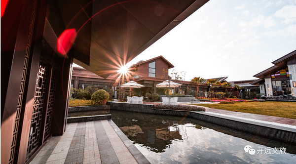 知花小镇景区的泳池坐落于蘭庭精品度假酒店内,设计的重点是创造一种体验,而不仅仅只是建造泳池这样一个独立的对象,真正做到了景观、艺术和建筑与水的统一。
