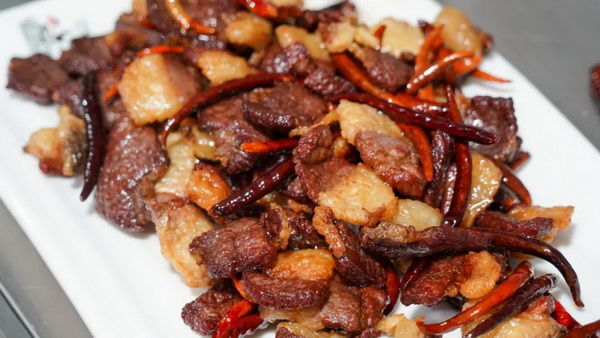 今年51岁的赛德伟从小看着家里人腌制牛干巴,耳濡目染也学会了这项技艺,于是,他就想让更多人品尝到牛干巴的美味,也想将腌制牛干巴的传统手艺传承下去,便与亲戚朋友一起,开了一家名叫“桥边小院”的餐厅。