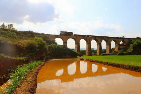 玉林山大桥在开远站与玉林山站的区间内,具备典型的欧式风格,当地人将该桥叫作“七孔桥”。