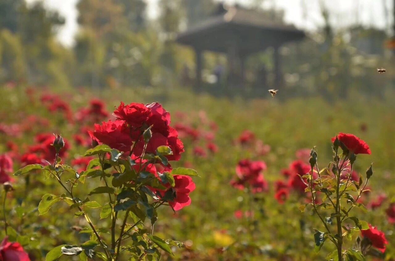 我市凤凰生态公园漫山遍野的玫瑰花盛开