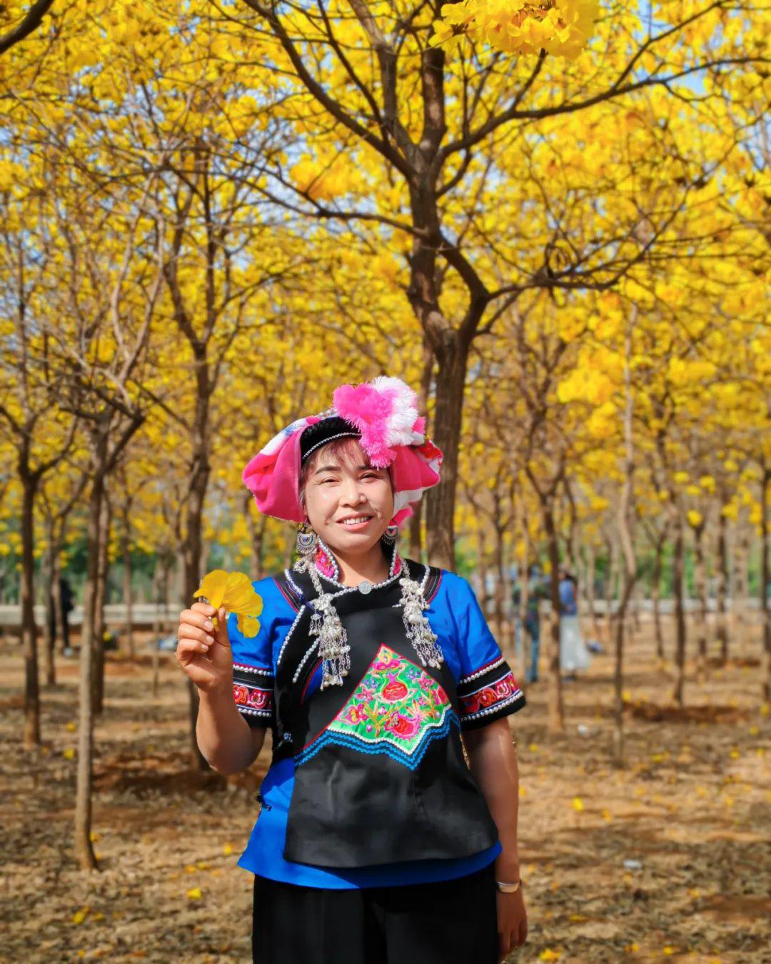每年三月,黄花风铃木“金”艳绽放,游人如织、热闹非凡,金黄满目犹如置身一片“黄金花海”,美不胜收。黄花风铃木随风摇曳,在吸引无数游客驻足拍照打卡的同时,也“摇出”社区集体经济美好“钱景”,带动居民通过摆摊等方式吃上“旅游饭”。