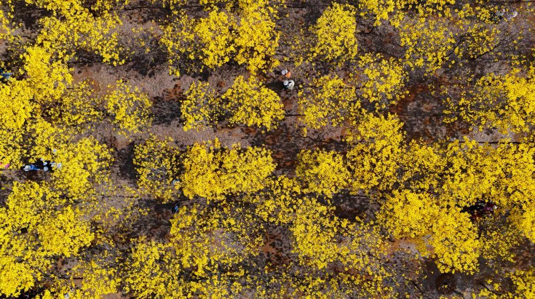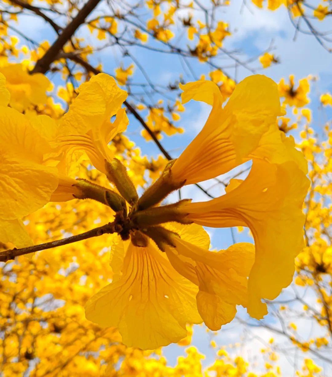 黄花风铃木因花黄色形如风铃而得名代表感谢和感恩,“金”艳绽放赏花正当其时,欢迎广大游客约上三五亲朋好友来一场春天的浪漫之约。快到黑泥地打卡吧!