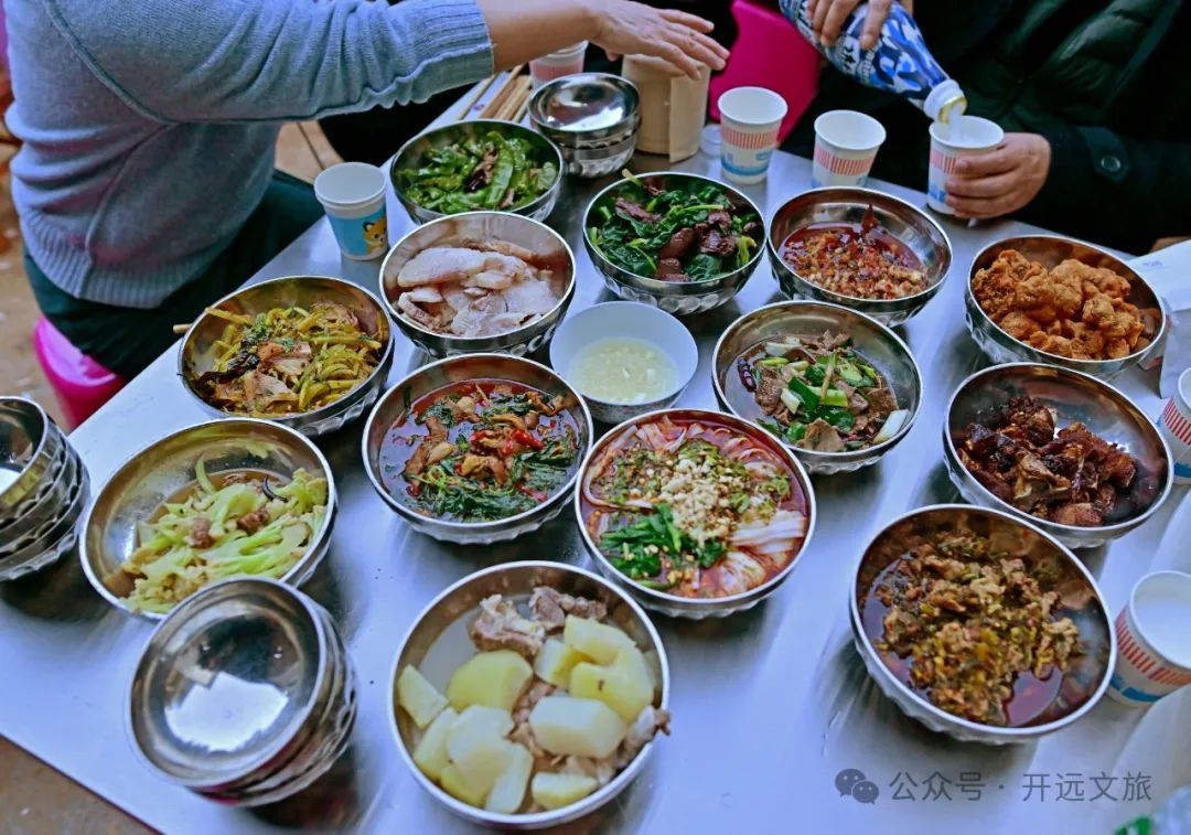 热情淳朴的开远人,无论是哪一家杀猪,都会举全家甚至全村之力一起帮忙。从早晨开始,烧水的、分肉的、择菜的……每个人各司其职,井井有条。