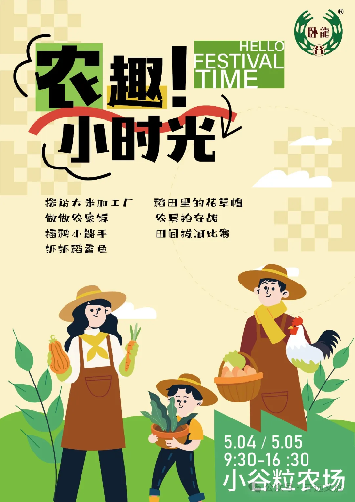 5月4日、5月5日,带上孩子来探访大米加工厂,体验“稻田里的花草帽”、做农家饭、插秧、田间拔河、抓稻香鱼,还可以来一场酣畅淋漓的“农具抢夺战。