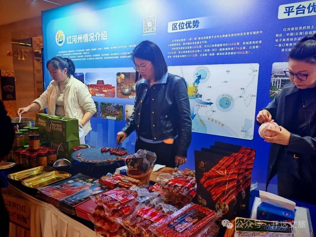 在2026年“北京遇见红河——红河州外资招商引资推介会暨红河九红产品进京推介会”上,来自开远的特色产品玫瑰酒、开远小甜肠、卧龙谷米花糖和精品红柚等农特产品精彩亮相,以独特风味与深厚的地域文化底蕴,为现场嘉宾带来一场舌尖上的滇南盛宴。