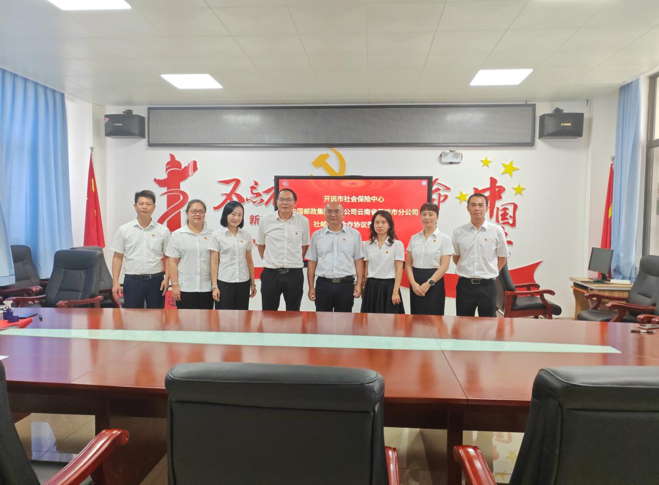 为满足参保人员对高质量社保服务的需求,打通服务的“最后一公里”,开远市大力推行“社邮合作”人社服务新模式,积极拓展人社服务空间、延伸服务链条、提升服务质量,努力让群众办事更近、更快、更便利,进一步满足群众“少跑腿”“便捷办”的社保服务需求。2023年9月28日,开远市社会保险中心与中国邮政集团有限公司云南省开远市分公司举行“社邮”业务合作签署仪式,市人社局党组书记、局长王俊和邮政开远市分公司总经理张俊生以及相关工作人员参加签署仪式。
