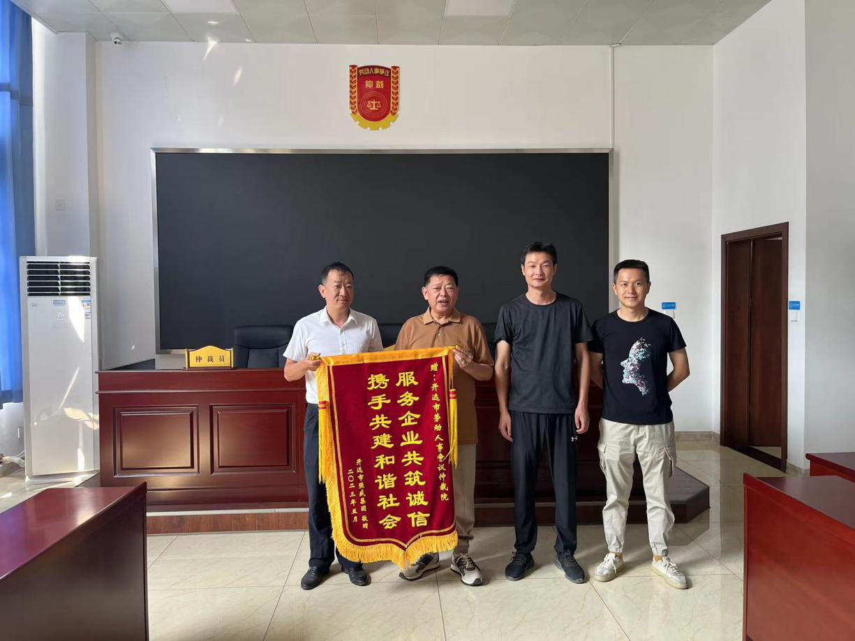 近日,我市一企业将一面印有“服务企业共筑诚信 携手共建和谐社会”的锦旗送到开远市劳动人事争议仲裁院。该企业对仲裁院工作人员秉公办案、高效调解、为民解忧表示衷心的感谢。