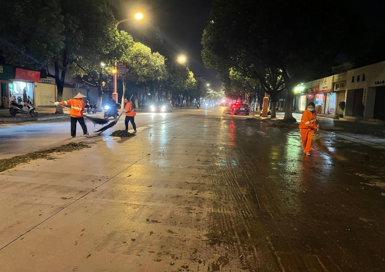 险情就是命令,坚守就是使命。开远市住建局第一时间吹响防汛抢险集结号,市政、环卫、园林、执法等800多名工作人员、27辆抢险车辆闻“汛”而动、“逆行”冲锋,全面排查城区风险隐患,迅速奔赴各区域开展抢险工作。当晚拆除环雅南路、智源东路、开远大道及高速匝道等损坏的路灯灯罩600余只;在东新路、河滨路、灵泉东路等9条主次干道清掏雨水箅子,打开雨水井盖加速路面排水;清扫道路30余条,清理树木断枝、倒伏15处,清理落叶、树枝等杂物50余吨,清运绿化弃料10余车;处理倒塌施工围挡8处、户外广告牌5块、金板凳苗木交易中心烧烤摊点遮阳棚20余个,全力消除安全隐患,保障节日期间道路正常通行,力争把人民群众生命安全隐患和财产损失降到最低。