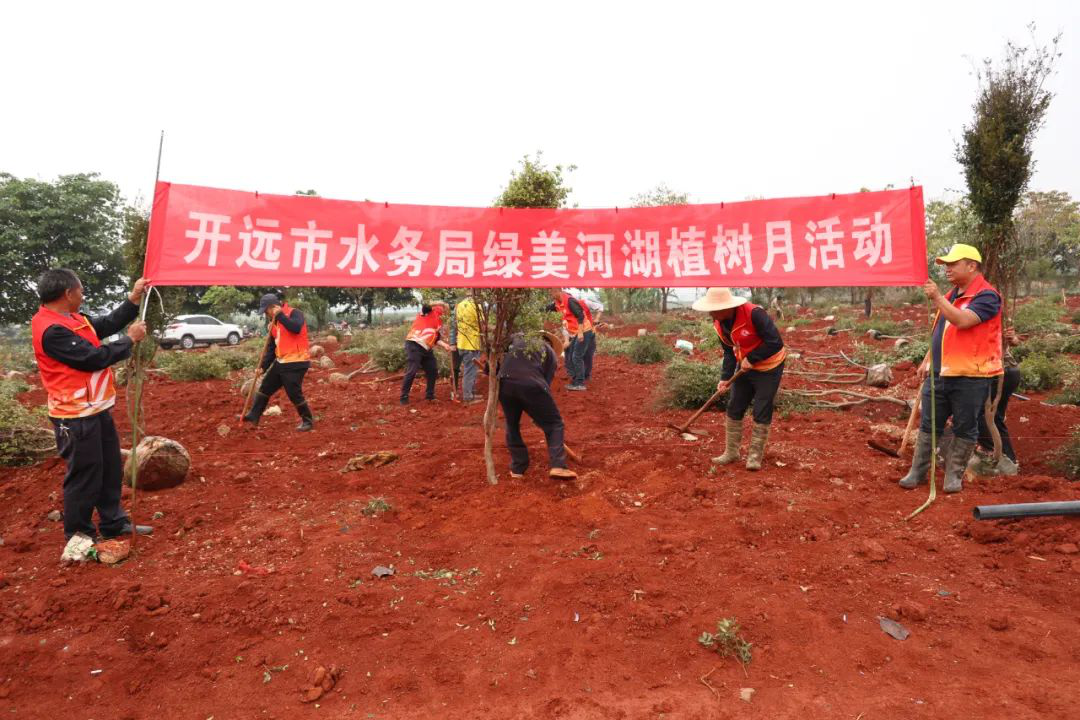3月29日,一场透地雨过后,开远市水务局抓住雨后植树成活率高的时间节点,组织干部职工到大庄水库开展义务植树活动。