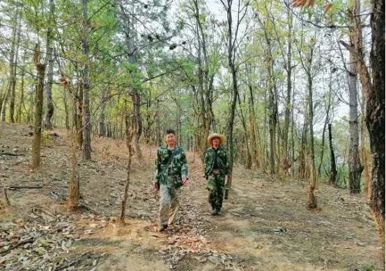 此刻树木抽芽,山峦转青,春色正浓。穿梭在春山树林中间的却是这样一群人,他们有着不同的名字,不同的籍贯,不同的年龄,但他们都有着一样被太阳烤得黝黑的肤色,一样爬满纹路的脸庞,一样坚毅的眼神,拿着一样沾满泥土的锄头镰刀,背着一样的军绿色水壶,戴着一样的草帽,日复一日做着同一件事情,就是巡林。