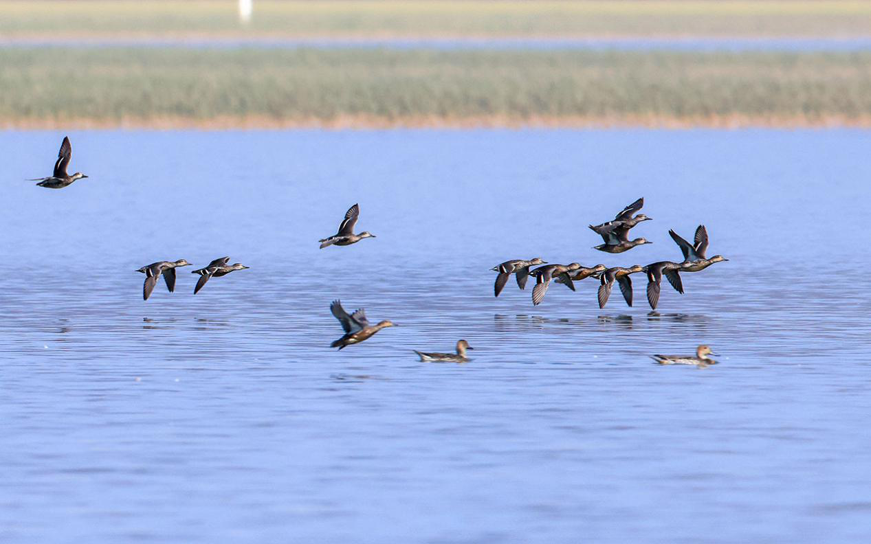冬日,天空湛蓝,阳光灿烂,云南省红河哈尼族彝族自治州开远市三角海湿地迎来了黑鹳、黑鸢、红胸秋沙鸭等越冬候鸟,候鸟的到来为这座城市注入了新的生机与活力。
