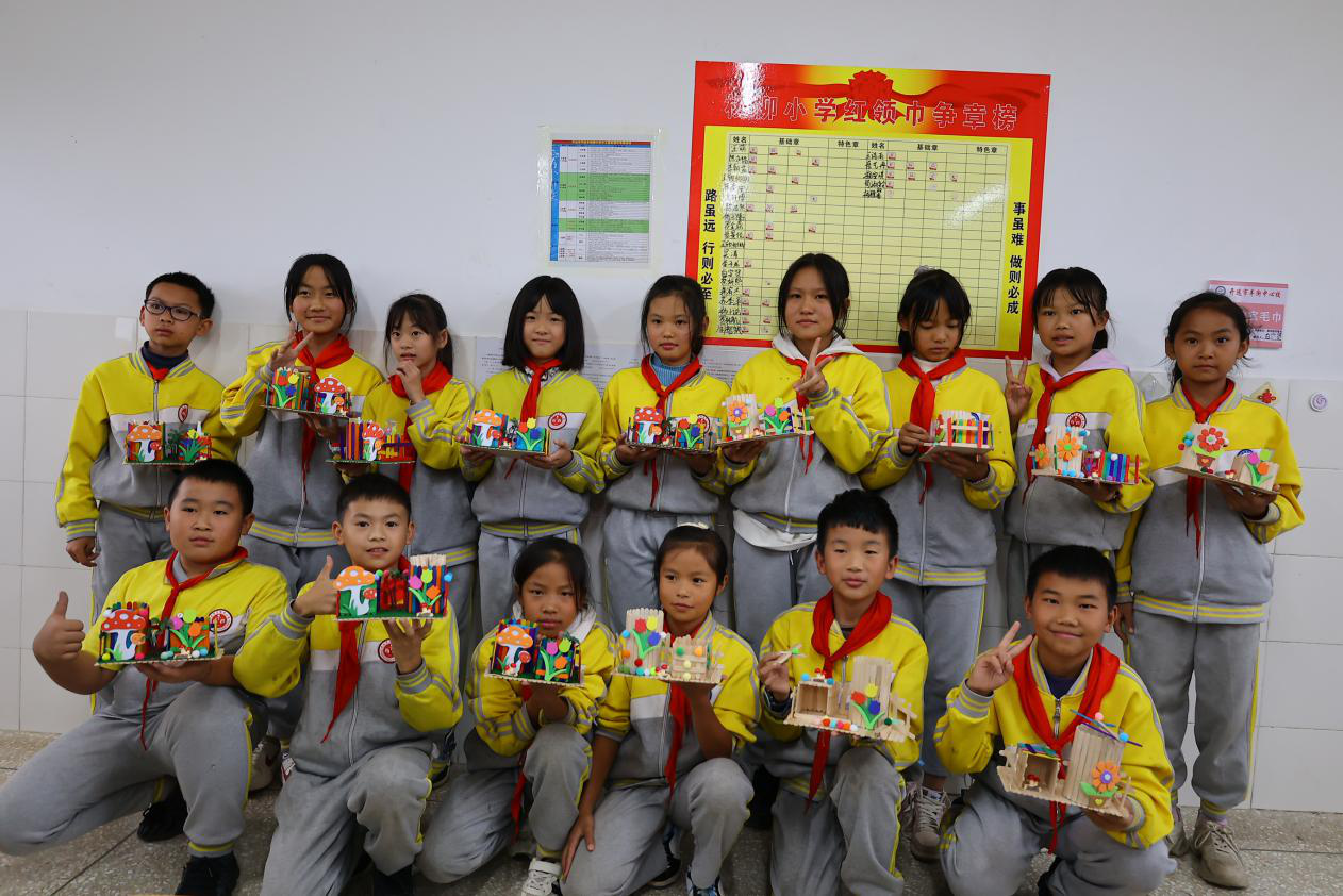 图3:羊街中心校杨柳小学孩子们与自己手工作品的合影