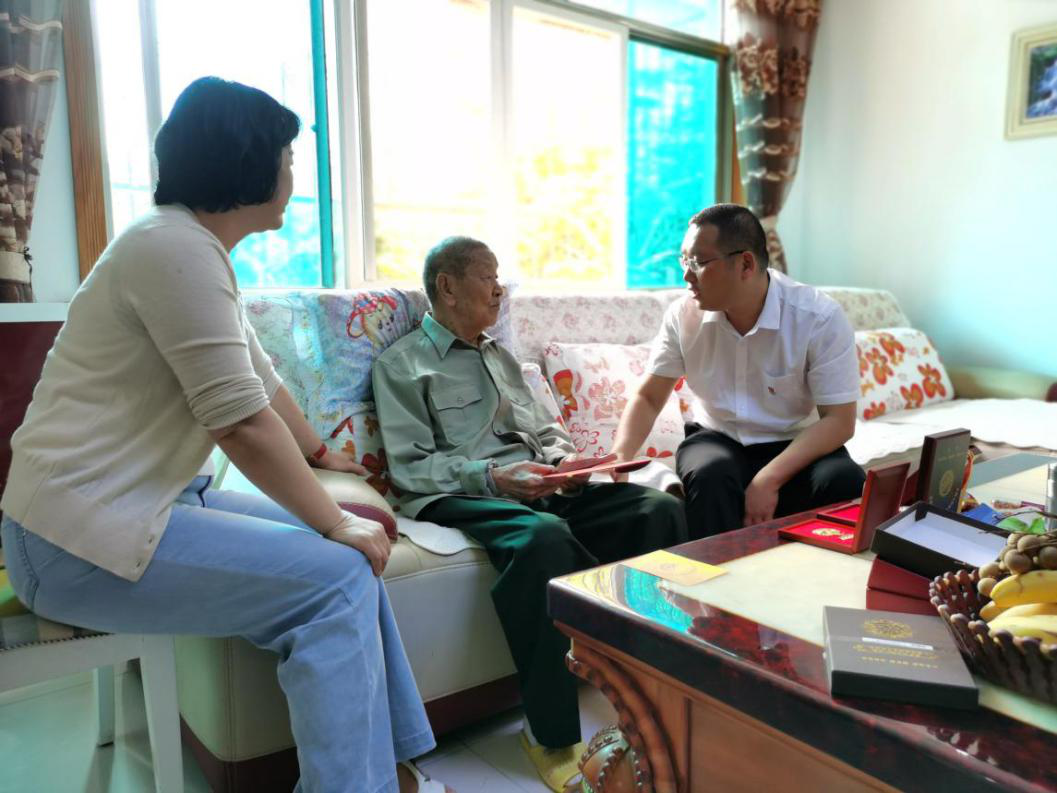 耿清河同志1922年3月出生,曾跟随邓小平、陈毅等老一辈革命家南征北战,为党的革命事业立下了汗马功劳。慰问中,韦金帆部长与老人及家属进行了亲切的交谈,聆听了一枚枚军功章背后的感人故事,并详细询问了老人的身体状况、子女工作等情况,嘱咐老人保重身体,并感谢老人为党和国家作出的贡献。