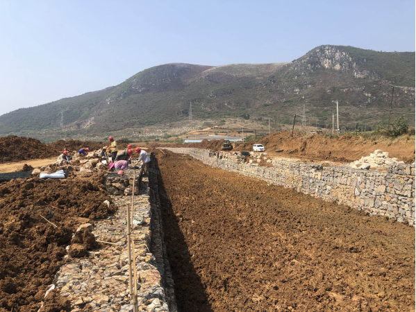 工程于2019年2月25日开工建设,截至目前,工程完成投资近2000万元。其中,格宾石笼护岸的堆砌已完成88%,河床开挖(清基)完成87%。预计将在汛期来临之前完成亲水部分工程建设,确保汛期河道畅通,安全泄洪。