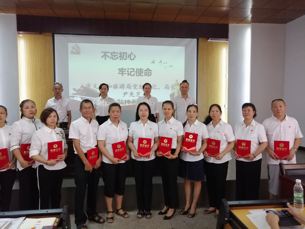 活动中党组成员为7月份过“政治生日”的6名党员发放了“政治生日”纪念卡、为2018年度16名“优秀共产党员”颁发了荣誉证书;党组书记、局长尹先芝同志带领全体党员重温了入党誓词;党组成员传达学习了《中共中央关于在全党开展“不忘初心、牢记使命”主题教育的意见》。