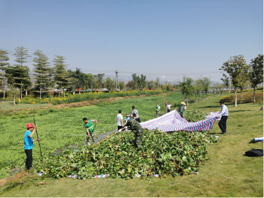 时下,由于气温升高,水葫芦进入繁殖旺季,我市河道和水库边上常常会有水葫芦疯狂生长,由于水葫芦生长的速度特别快,几天之内就可以将整个水体侵占。特别进入汛期,如果不及时进行打捞,水葫芦不仅会对水生态环境造成影响,还会造成河道的堵塞。开远市水务局的巡河人员,在巡河中发现南洞河黑渠闸至环湖桥段飘浮着成片的水葫芦后,立即协同乐白道办事处组织数十名河长制专管员集中打捞清理。此次打捞过程将要持续数天才能清理完成,被打捞上岸的水葫芦在岸上经过晾晒处理后,统一送往垃圾处理厂进行处理。