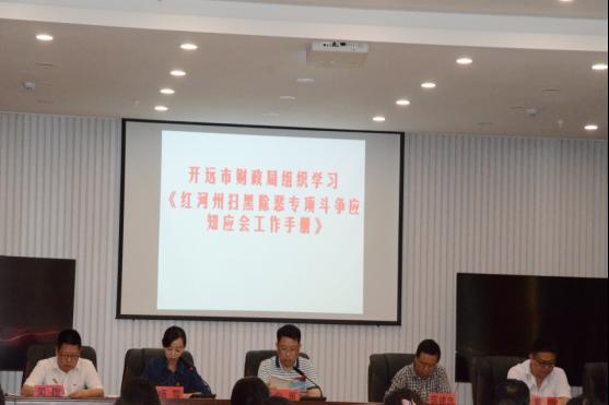 3月29日,开远市财政局召开干部职工会议,局党组书记、局长白勇同志领学了《红河州扫黑除恶专项斗争应知应会工作手册》,使广大干部职工深刻领会习近平总书记对扫黑除恶专项斗争的批示精神,充分认识扫黑除恶专项斗争的重大意义,明确扫黑除恶专项斗争的总体目标和各阶段目标任务、时间步骤,切实增强责任感和使命感,并对我局今年的扫黑除恶专项斗争提出具体的要求。