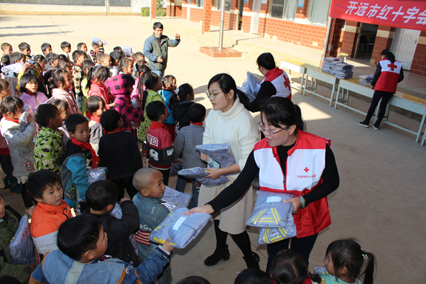 1月16日,市红十字会到灵泉街道办事处邓耳小学开展2018年“博爱送温暖活动”。