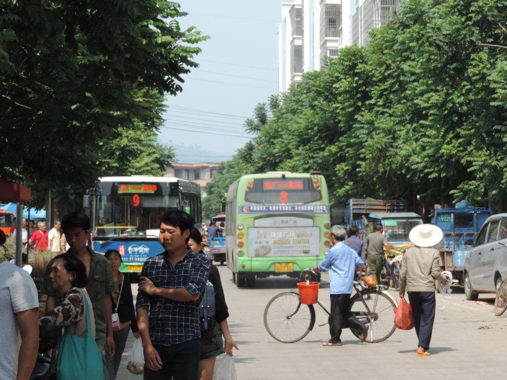 落云南路和灵泉西路道路较宽,经营活动在人行道上进行,对于道路通行影响不大,但是云龙路和人民南路道路相对较窄,加之农产品运输车辆随意摆放,导致车辆通行困难。