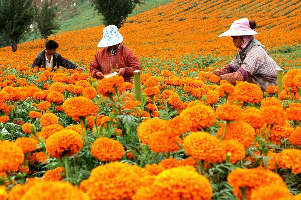 群众采摘万寿菊
