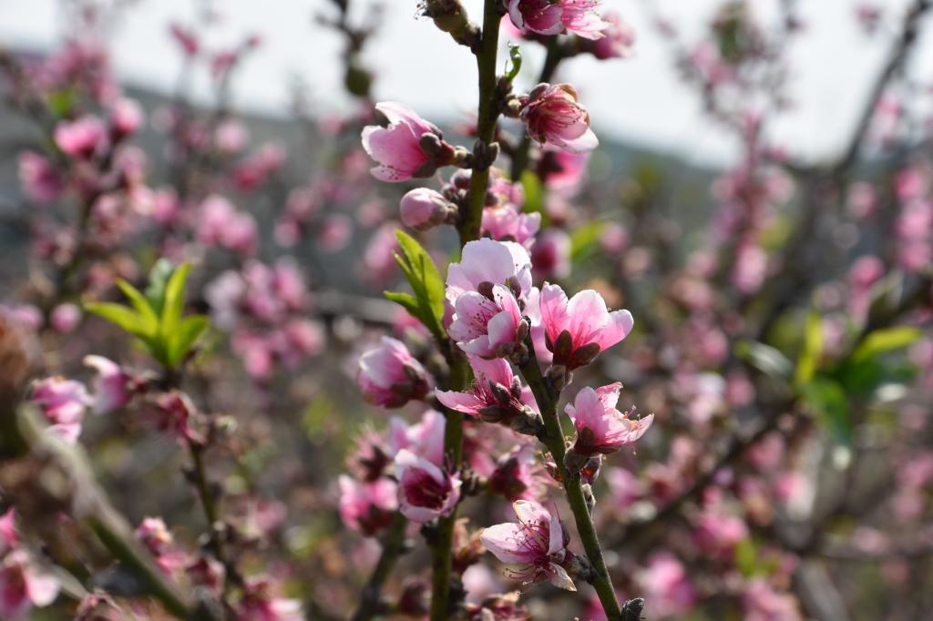 水沟村的叶青公司蜜桃基地,258亩的桃树近日进入盛花期。如果天气一直晴朗,预计本月20日左右结束花期。