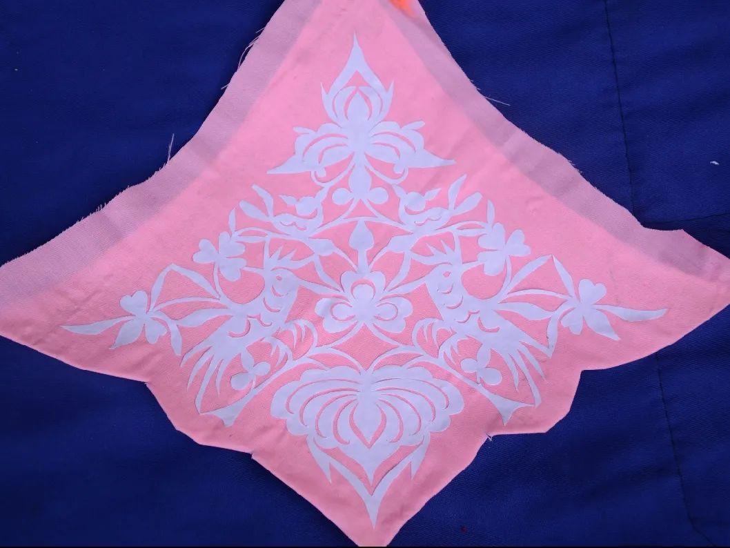 羊街乡鱼塘寨彝族剪纸绣,是彝族妇女展现才艺及审美观、传承彝族优秀传统文化的形象艺术。技术工艺为剪纸和刺绣两部分。