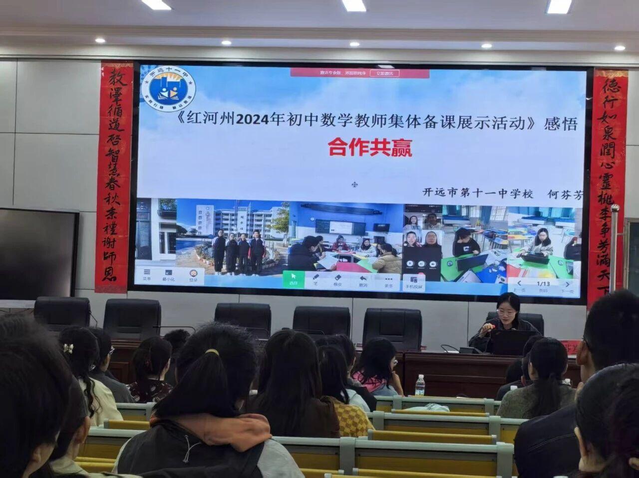 “工欲善其事,必先利其器。”正值开远市初中数学三年攻坚行动推进关键期,为保障2025年全市初中数学教师集体备课展示活动规范开展、有效落地,助力教学攻坚实现新突破,2025年10月22日下午,开远市教育科学研究所在开远市第五中学校阶梯教室组织开展了赛前培训,全市30位参赛教师参加了本次培训。