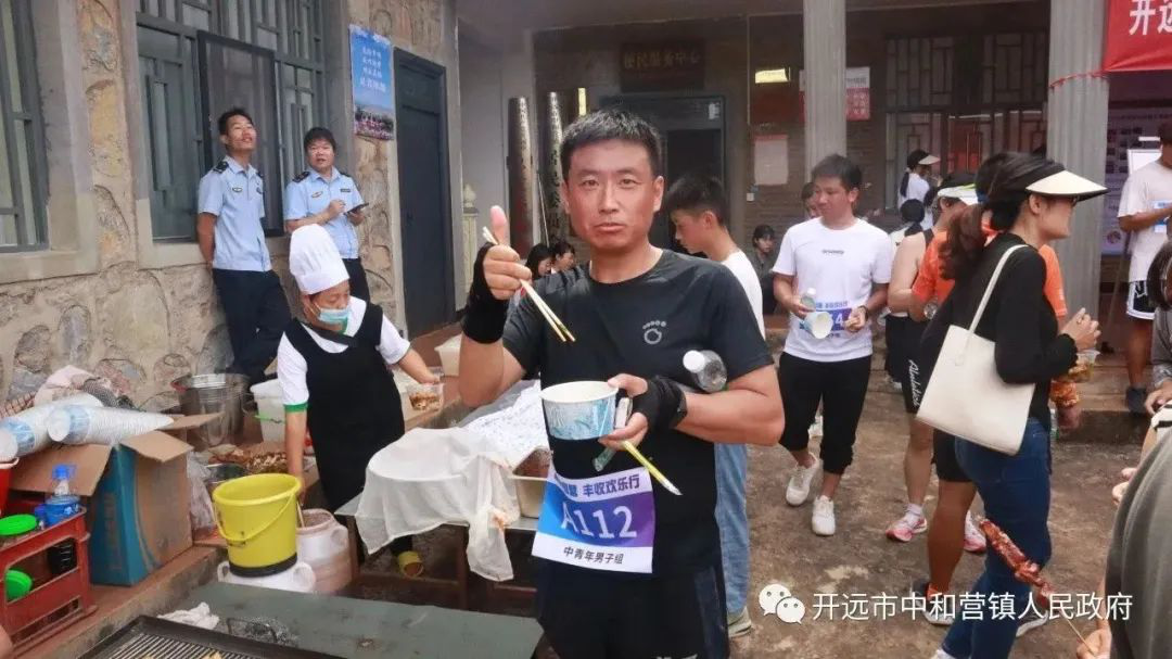 马拉松结束后,参赛选手们以及前来参观的游客集中在跃进社区小广场品尝中和营当地美食小吃,感受农忙一年的丰收成果,体验中和营特有的美味。