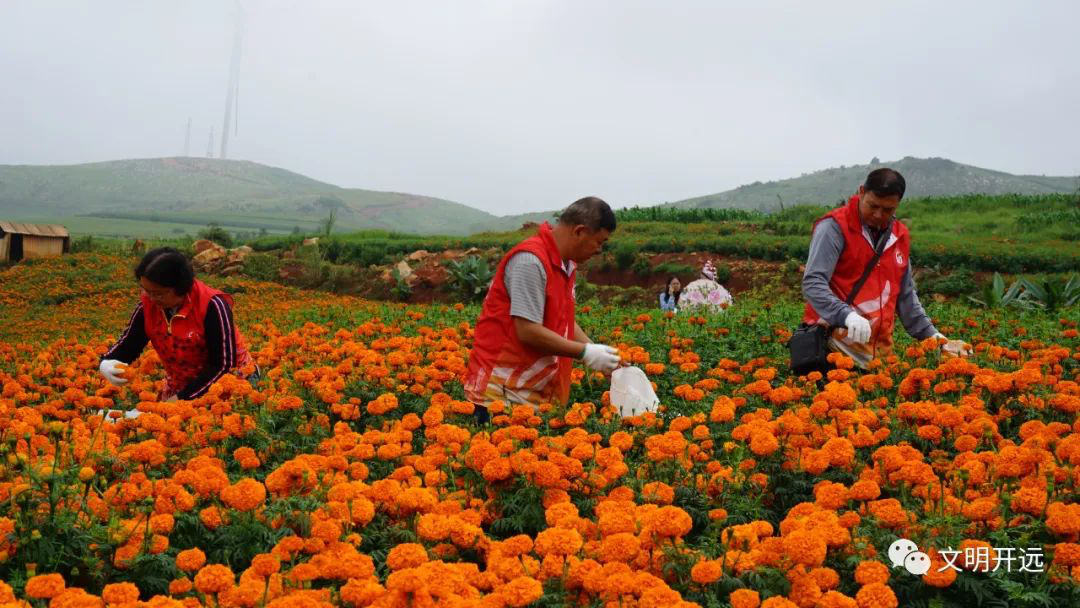 在采摘的过程中,大家还关切地向花农了解情况,倾听花农的所想、所难、所盼。