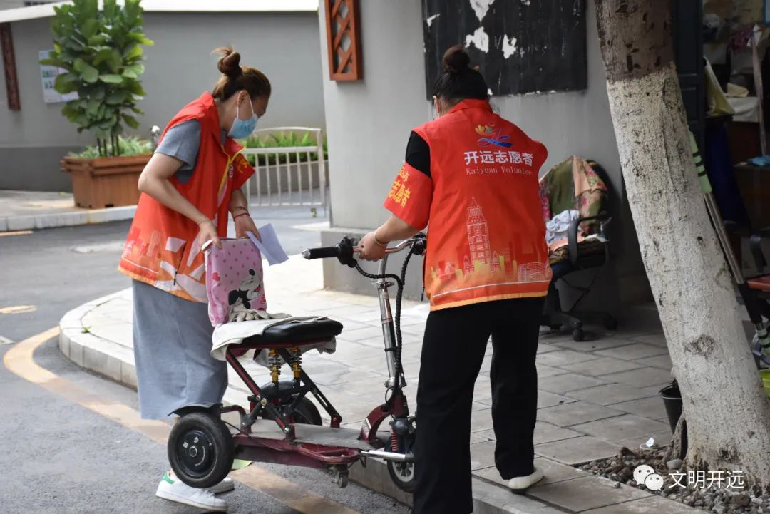 在健民社区,身穿“红马甲”的志愿者们穿梭在大街小巷,引导居民群众不乱堆杂物、不乱停车辆,爱惜绿化,不乱晒乱挂;引导商铺经营者保持店铺门前整洁卫生,不占道经营,并对占道堆放的物品进行清理。