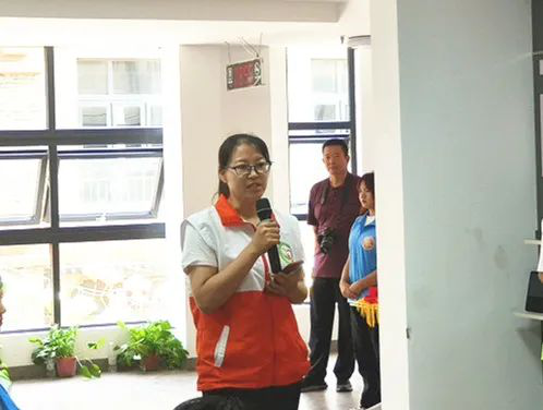 社工站负责人李思睿向领导一行介绍灵泉街道社会工作服务站驻站以后的工作思路及工作开展情况。