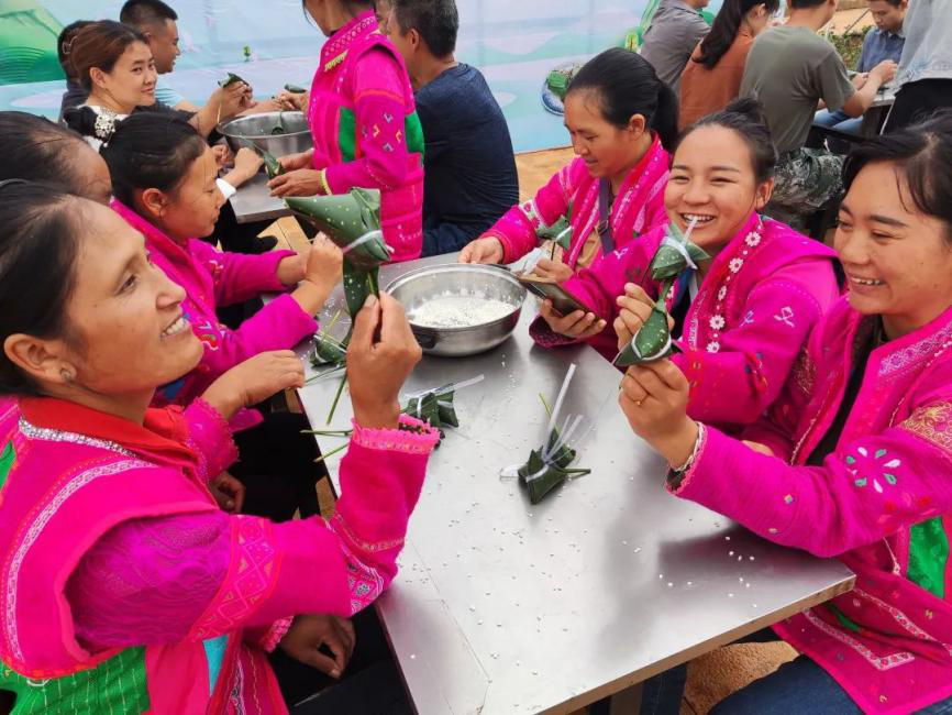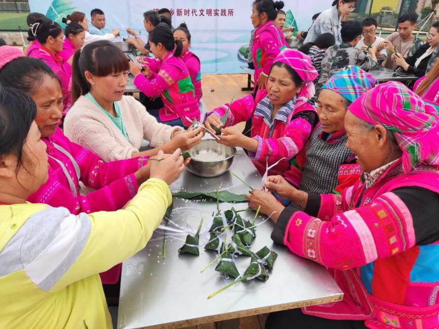 为了继承和发扬中华民族优秀传统文化,营造欢乐祥和、文明健康的节日氛围,进一步丰富碑格乡辖区群众以及机关干部职工的精神文化生活,厚植传统节日情怀。近日,碑格乡举办主题为“端午粽飘香 欢聚庆佳节”的文化实践活动,碑格村的妇女和机关干部职工一同来到碑格乡民族团结文化广场,进行一场包粽子的活动。