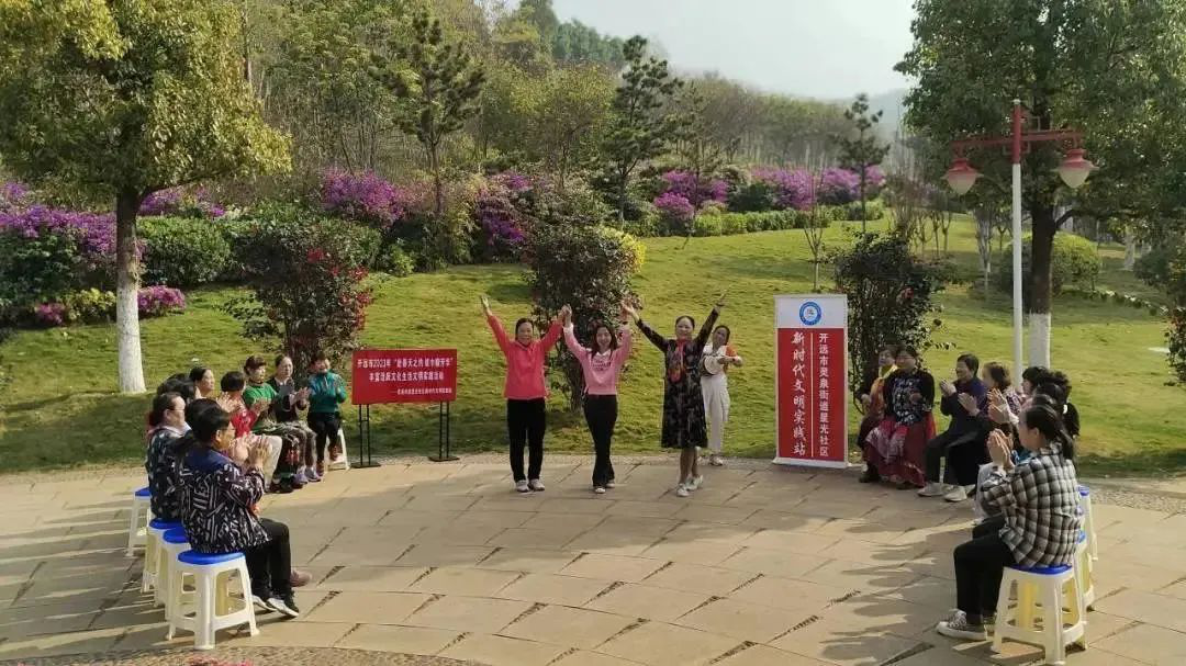 3月8日上午,星光社区开展“赴春天之约 绽巾帼芳华”丰富活跃文化生活文明实践活动,在1909广场踏青、合唱歌曲,增进彼此间的感情,营造出社区大家庭的和谐氛围。
