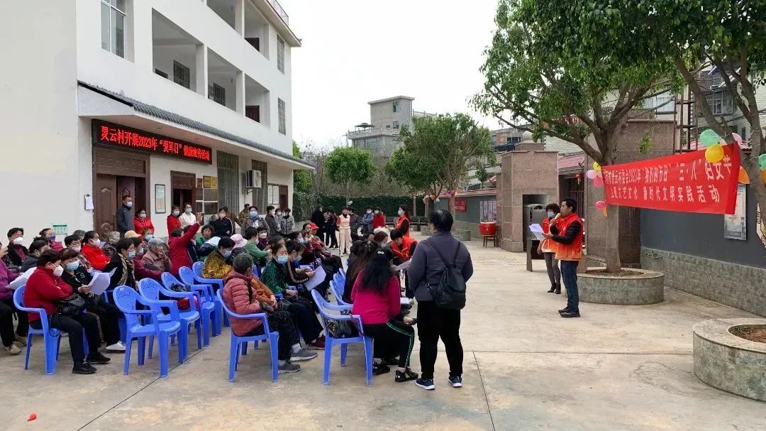 3月3日早上,灵云村委会新时代文明实践站开展2023年“我们的节日 三八妇女节”主题文化文艺新时代文明实践活动,100余名女性村民积极参与,开展了有奖知识抢答,踩气球、盲人击鼓等游戏,现场气氛高涨,丰富了村民的精神文化生活,得到了村民的广泛好评。