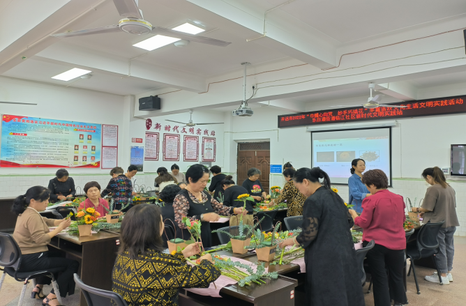 借花寓意,以花言志。插花活动的开展,陶冶了社区居民的情操,让她们在精神文化层面获得更多的满足感和幸福感,艳丽的花朵,也象征着居民群众红红火火、多彩甜蜜的美好生活。