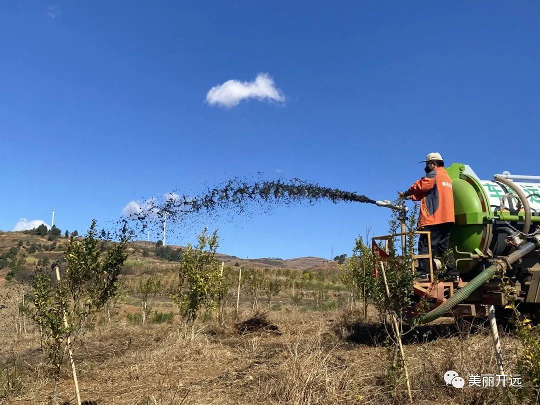 干粪可以直接使用,湿粪则是从周边村寨收集沼气液,在发酵池内进行为期一个星期的发酵,再用洒肥车将经过处理的农家肥喷洒还田,搭配红磷公司的土地改良剂一起使用,效果更好。