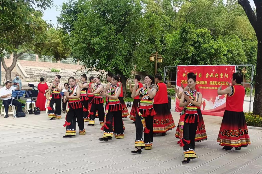 南路村委会开展“携手迎国庆 金秋贺重阳”文艺活动,居民们载歌载舞,宣传孝老爱亲典范,同声祝福祖国繁荣昌盛。