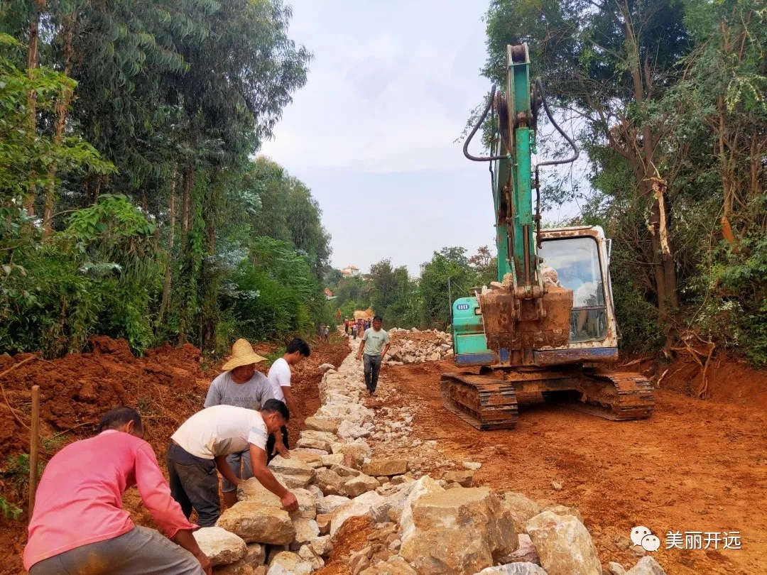 在党员干部和村民们的齐心协力下,一条平整的“丰收路”雏形渐显,
