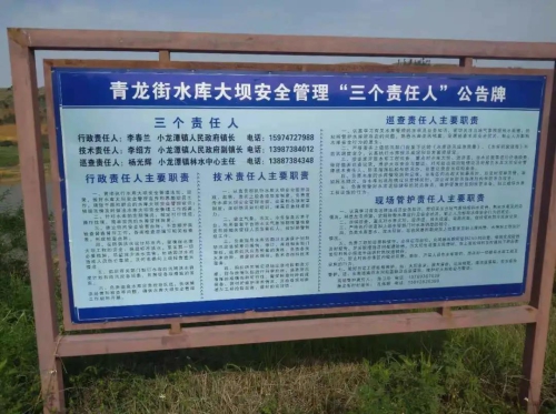 一是全面加强隐患排查。镇防汛办在汛前、汛期定期或不定期对辖区内的水库(坝塘)、河道(沟渠)及有地质灾害隐患和易出现隐患的地区进行全方位排查,对查出的隐患分别进行处理或制定应急度汛措施,确保监测到位、排查到位、责任到位、反馈到位,做到早发现、早预防、早应对。及时更新青龙街水库“三个责任人”公告牌,对两个放水闸阀进行维护,对溢洪道内的障碍物进行了全面清理,安排1名现场管理员对水库进行日常巡查管理,确保水库汛期运行安全。