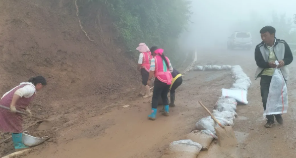 面对山区路段坍塌等安全隐患,新寨党支部、蚂蝗箐党支部党员冲锋在前,做好“排头兵”,主动组建应急突击队,对坍塌路面进行全面清理,并做好通行劝导工作,保障了山区群众出行畅通和安全。