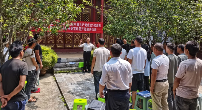 7月28日,州委宣讲团成员、州委州直机关工委常务副书记李颖来到大庄乡爱国主义教育基地(龙泉书院),向村组干部、基层党员、群众宣讲“七一”习近平总书记重要讲话精神。