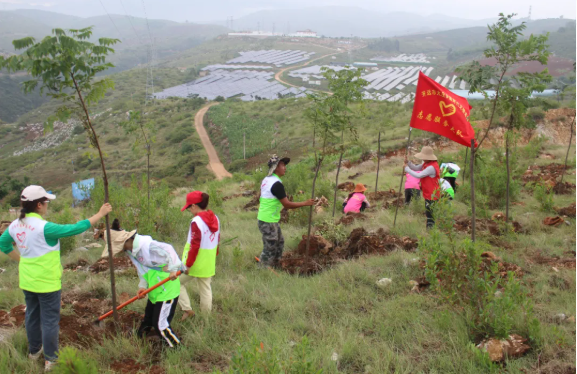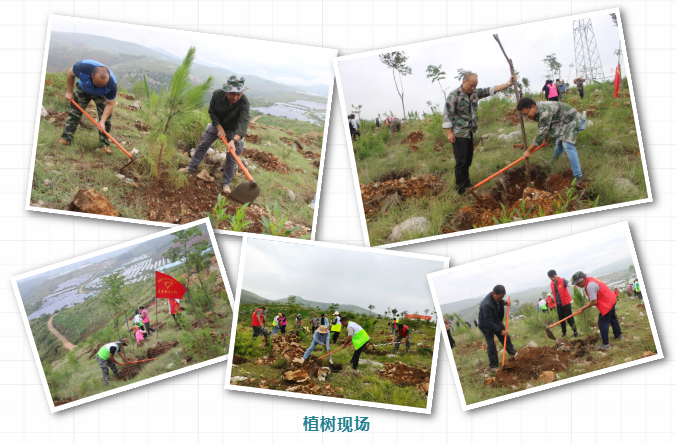 植树现场, 技术人员对植树窝距、培土、栽植等要领进行了讲解, 大家个个干劲十足,发扬团结协作的精神,挥锹铲土、挖坑固苗、放苗回填、培土踩实、浇水灌溉,分组分片进行栽植,熟练地完成每一道工序,植树现场一片热火朝天,经过两个多小时的辛勤劳动,500余棵湿地松、栾树小树苗迎风而立,呈现出一片生机勃勃、绿意盎然的景象。