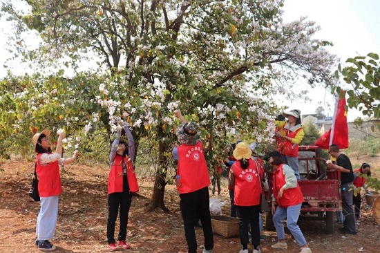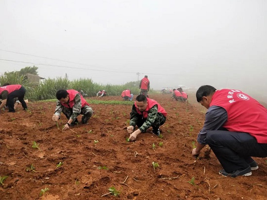 组织街道全体党员干部职工进村入户,帮助缺劳力、无劳力农户干农活、发展生产。先后到城干村委会上浑水塘村帮助无劳力贫困户采摘玉荷花30余公斤、到洒红口村帮助当地3户农户完成15亩菊花菊花栽种。解决了群众劳动力缺乏、导致的栽种采收不及时问题,为他们发展产业提供了帮助。
