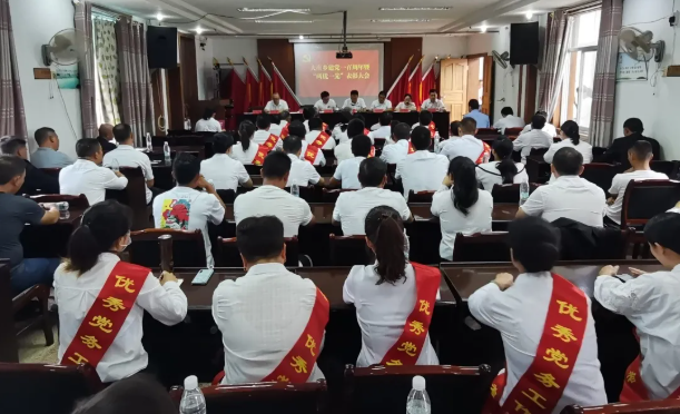 会上,乡党委副书记、乡长马航领誓,全体党员重温入党誓词。乡党委副书记王义松同志宣读表彰决定,乡党政领导为受表彰的8位先进基层党组织书记、17位优秀共产党员、5位党务工作者颁奖,向5位党员代表颁发“光荣在党50年”纪念章。