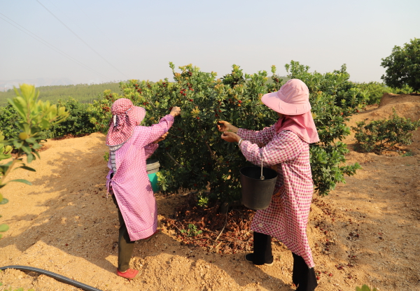 据了解,新寨村委会目前共有牛街村、干塘村、丫勒村和六甸村4个村60多户农户种植1600多亩“特早梅”。这些“特早梅”主要发往江浙、福建等地,比江浙一带种植的杨梅提前了近两个月上市,在销售上有了时间差的优势,弥补了市场空缺,抢占了市场先机。目前每公斤“特早梅”可以卖到50元左右,预计今年的产值可达600万元左右。在之前开展的脱贫攻坚工作中,我街道因地制宜,结合实际于2017年组织新寨村委会这4个村的村干部外出考察学习、引导以“合作社+农户”的模式带动农户将山坡地用来发展“特早梅”种植,让当地的又添一个特色产业。我街道还积极向上争取了资金为杨梅基地完善相关基础设施,合作社负责技术指导和销售渠道,解决了农户的后顾之忧,有力助农增收。