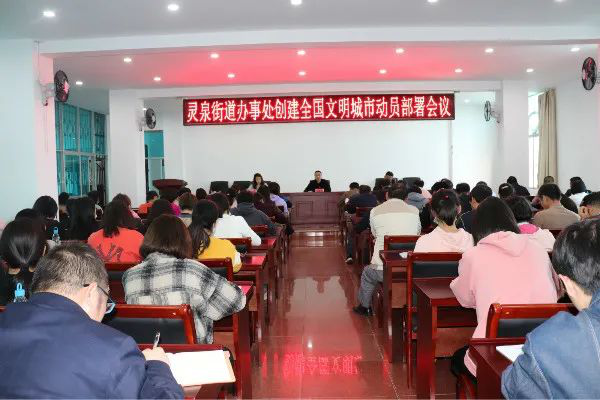 2月23日,灵泉街道召开创建全国文明城市动员部署会,对创建全国文明城市进行安排部署,为全体干部群众争创全国文明城市统一了思想、铸牢了根基。会议由街道党工委副书记、主任戴金华同志主持。街道党政班子成员、各村(社区)党总支书记、新时代文明实践所(站)工作人员及街道全体干部职工共110余人参加会议。