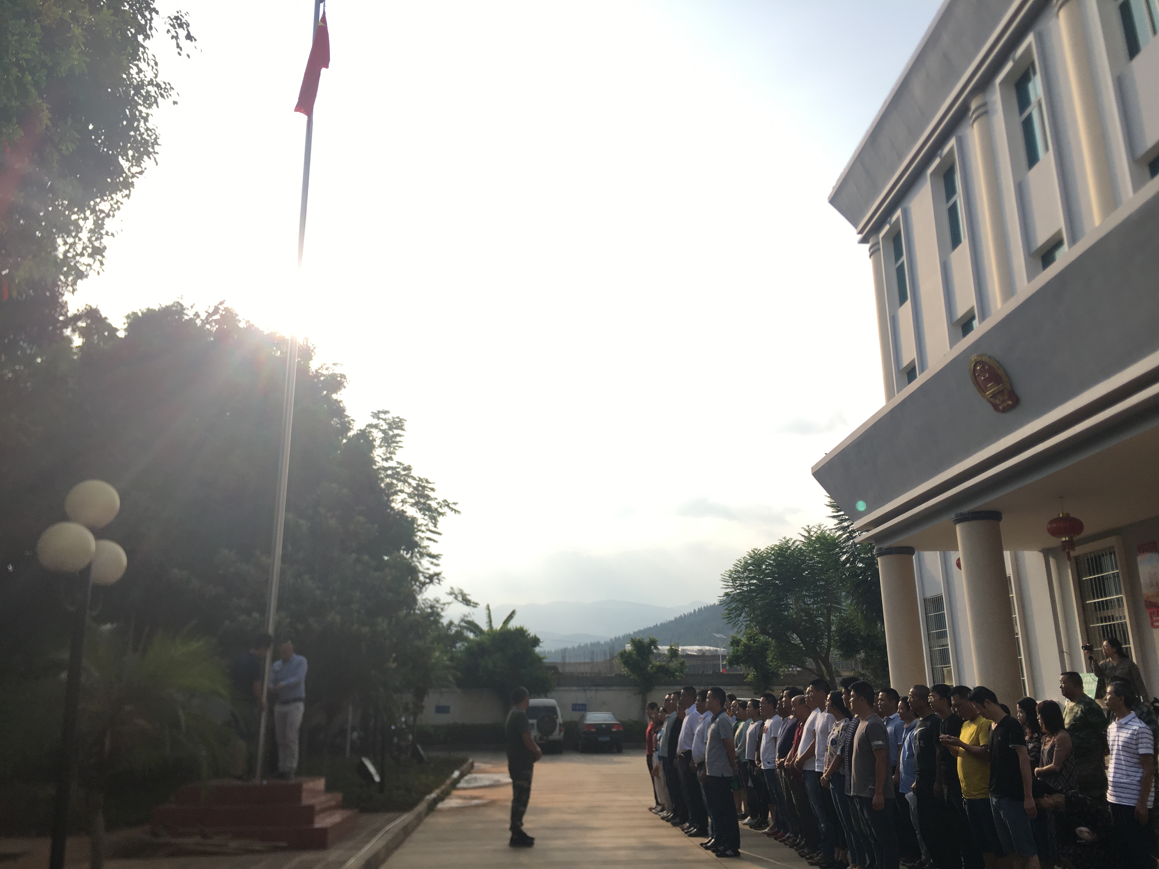 随着雄壮的《国歌》,英姿飒爽的升旗手奋臂将国旗展开,在大家的凝神注目下,五星红旗冉冉升起。机关干部职工个个肃穆而立,凝视着缓缓升起的五星红旗,目光在此刻汇聚,人心在此刻凝结。升旗仪式结束后,我乡干部职工纷纷表示,参加升国旗仪式,听着激昂、嘹亮的国歌,看着鲜艳的五星红旗冉冉升起时,觉得特别庄严和自豪。