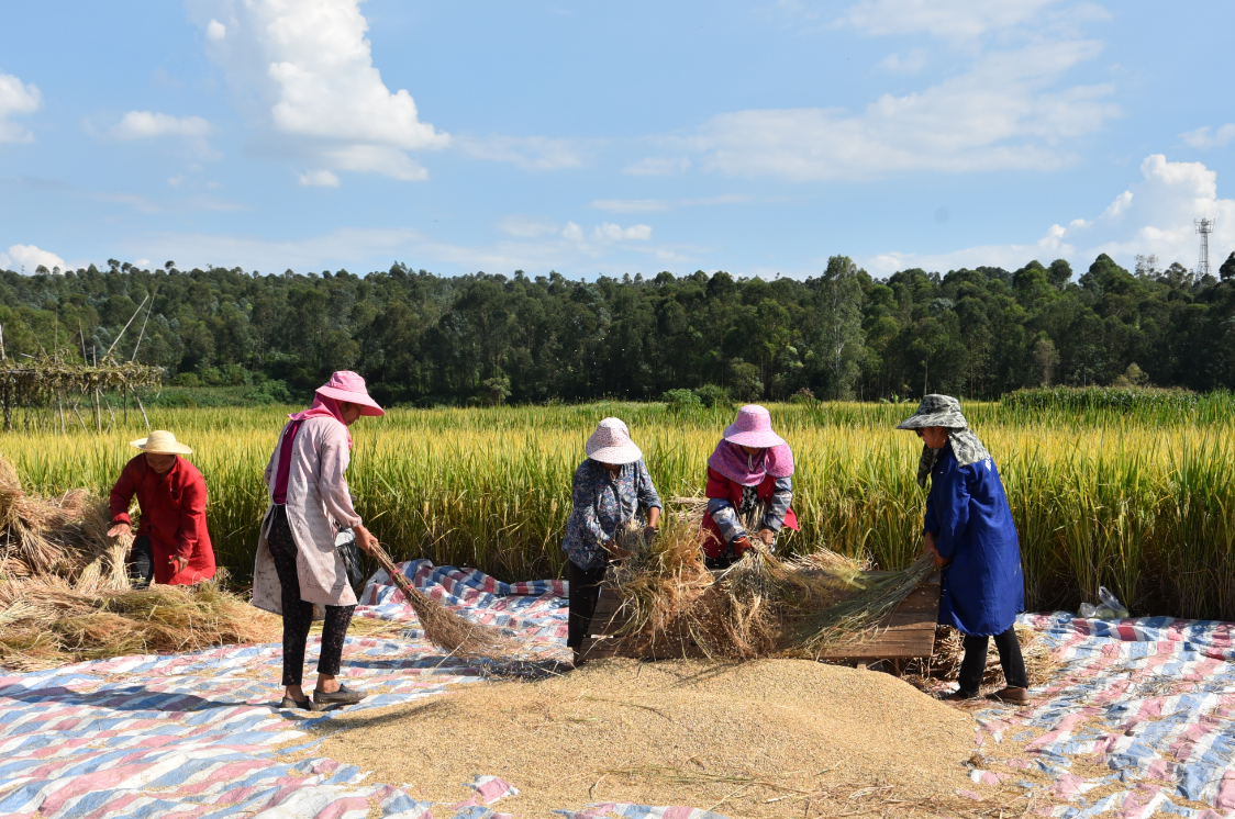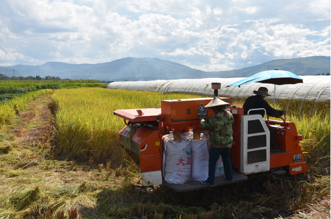 今年的水稻收割还是以人工收割为主,小坝心片区仁者村委会的卧龙邑、八盘、莲花塘等几个村组的部分农户依托了卧龙邑村成立的农机服务专业合作社,使用了机械收割的模式。