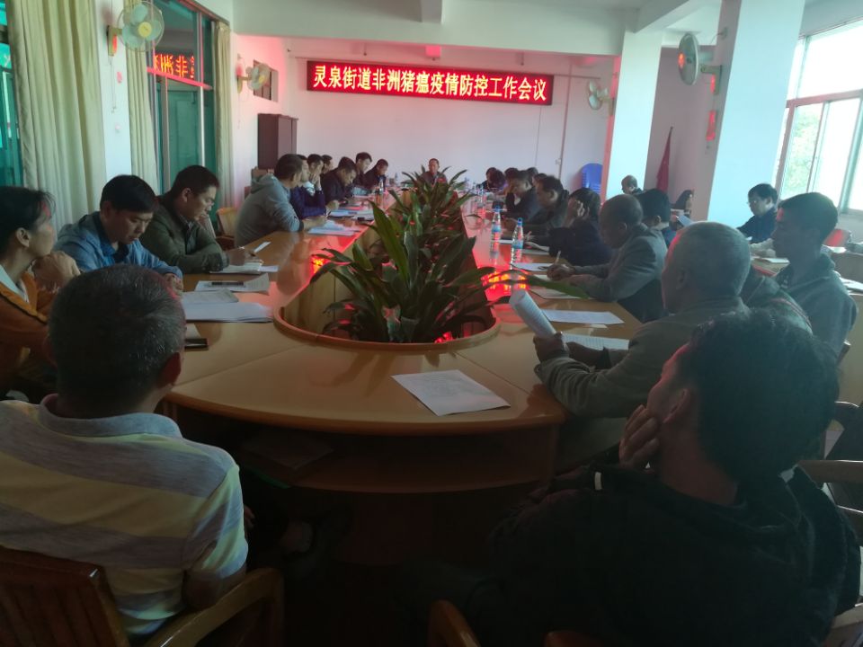 为落实好非洲猪瘟防控工作,10月31日,灵泉街道召开“非洲猪瘟”防控会。