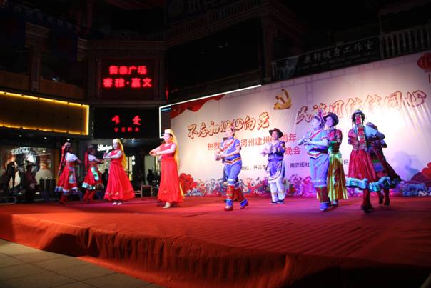 为了深入贯彻落实中央“四个全面”、深刻领会“五大发展理念”、倡导社会主义核心价值观、讴歌党的丰功伟绩,歌颂改革开放以来全街道的发展变化。11月14日晚,灵泉街道组织社区在衡泰广场开展了“不忘初心心向党,民族团结结同心”为主题的庆祝建州61年、建市37年廉政文艺演出活动。街道文化站,南正街社区、小新村社区、崇文社区工作人员及社区居民共计1000余人参加活动。